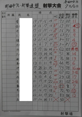 2020/07/12 須山射撃場第2回月例会 スコア